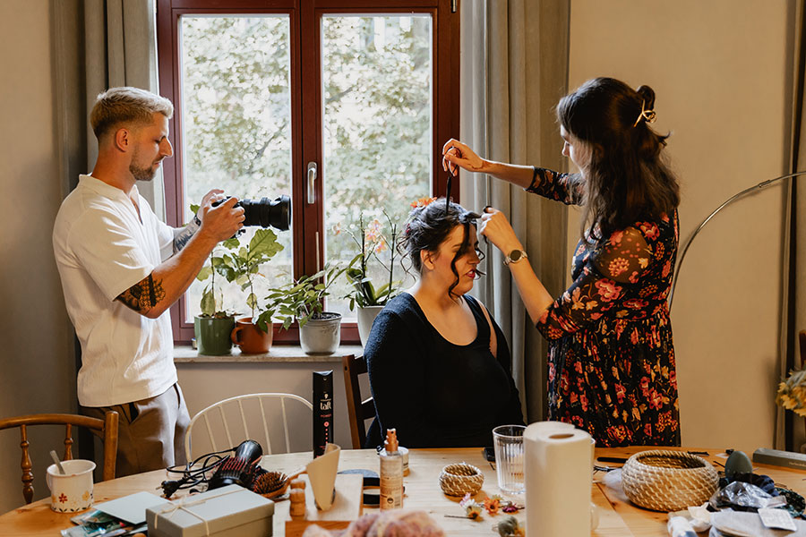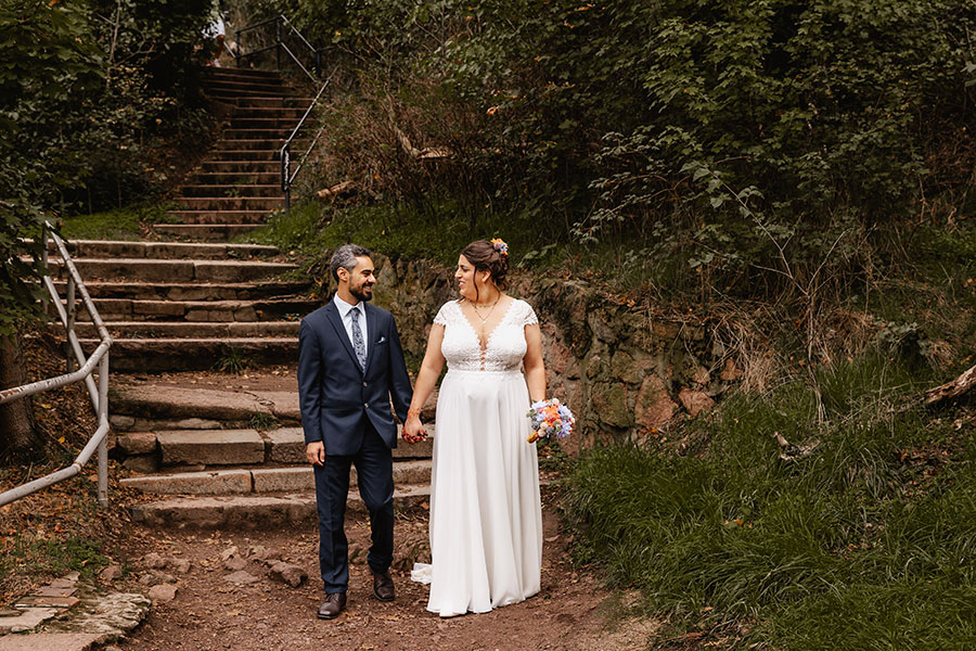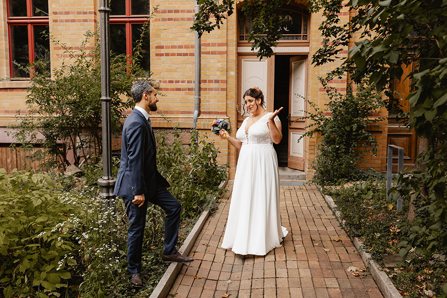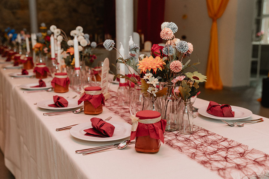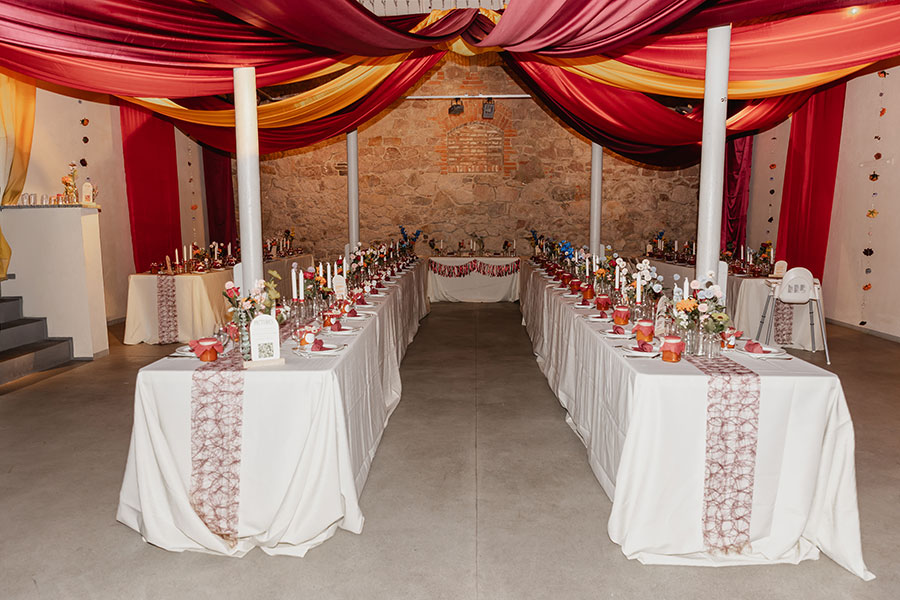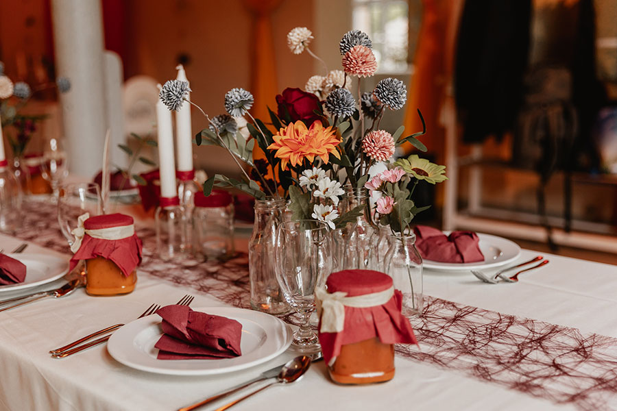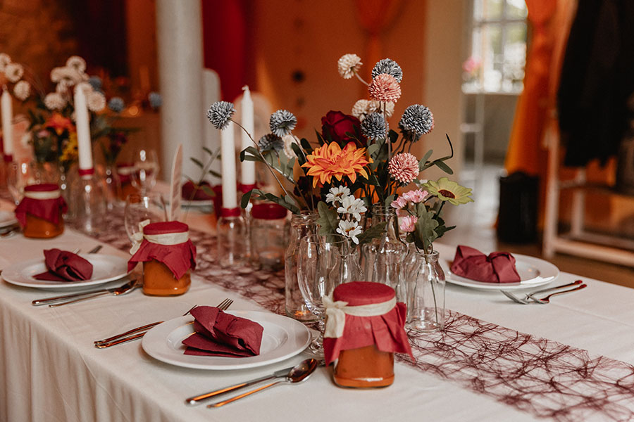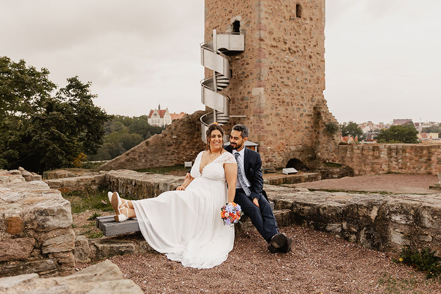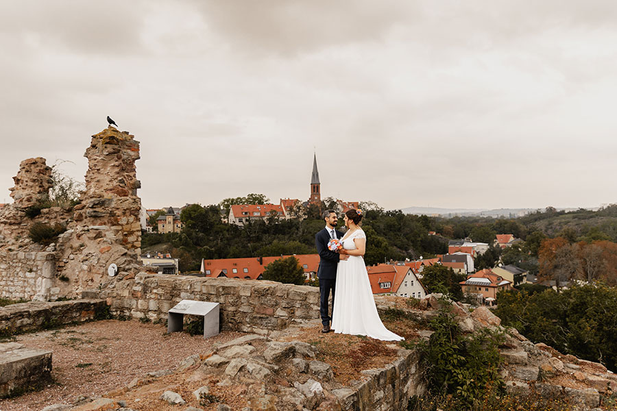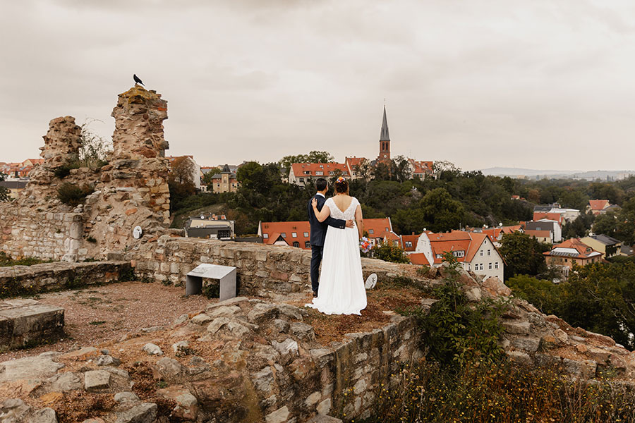 Das Team des Eventateliers sorgte für einen reibungslosen Ablauf und eine perfekte Vorbereitung der Location, so dass sich das Paar ganz auf seine Gäste und die besonderen Momente einlassen konnte. Für das Paarshooting ging es anschließend zur beeindruckenden Burg Giebichenstein - eine traumhafte Kulisse, die den Tag in stimmungsvollen Bildern abrundete.