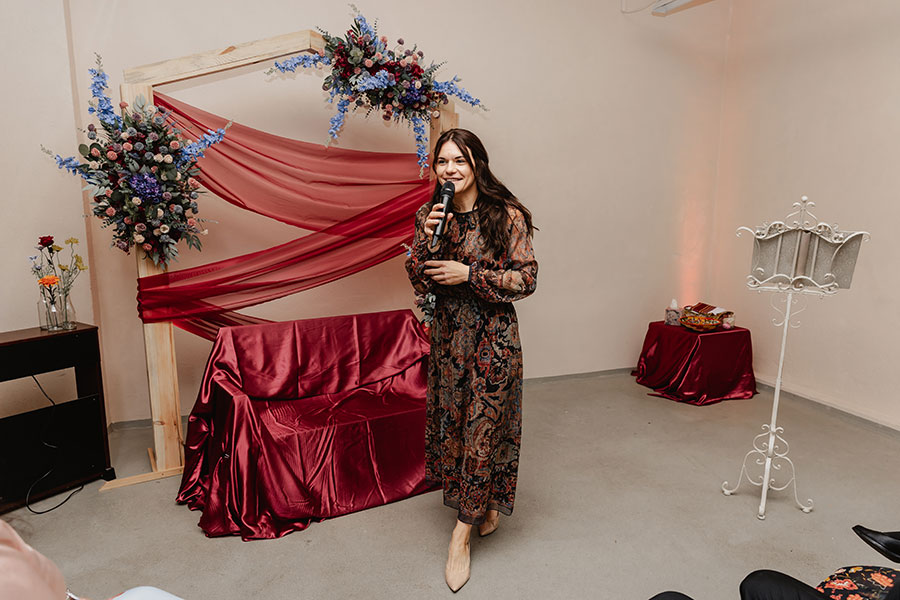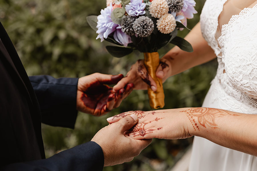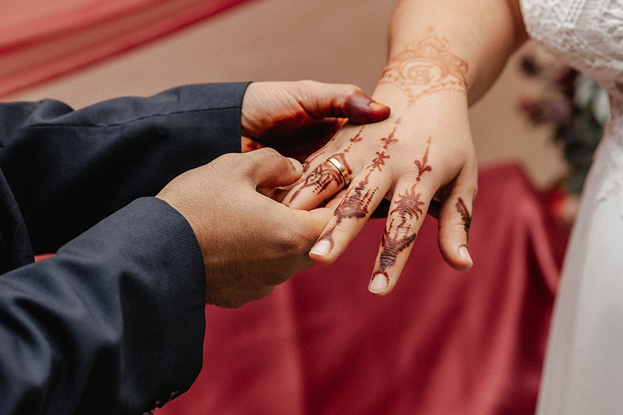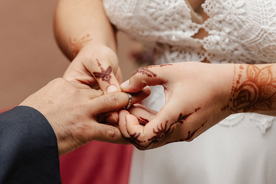 Diese wurde von Traurednerin Carolin Seifert aus Eisenach zweisprachig gehalten und spiegelte die deutsch-sudanesische Verbindung des Paares und der Familien und Freunde auf wunderschöne Weise wider.